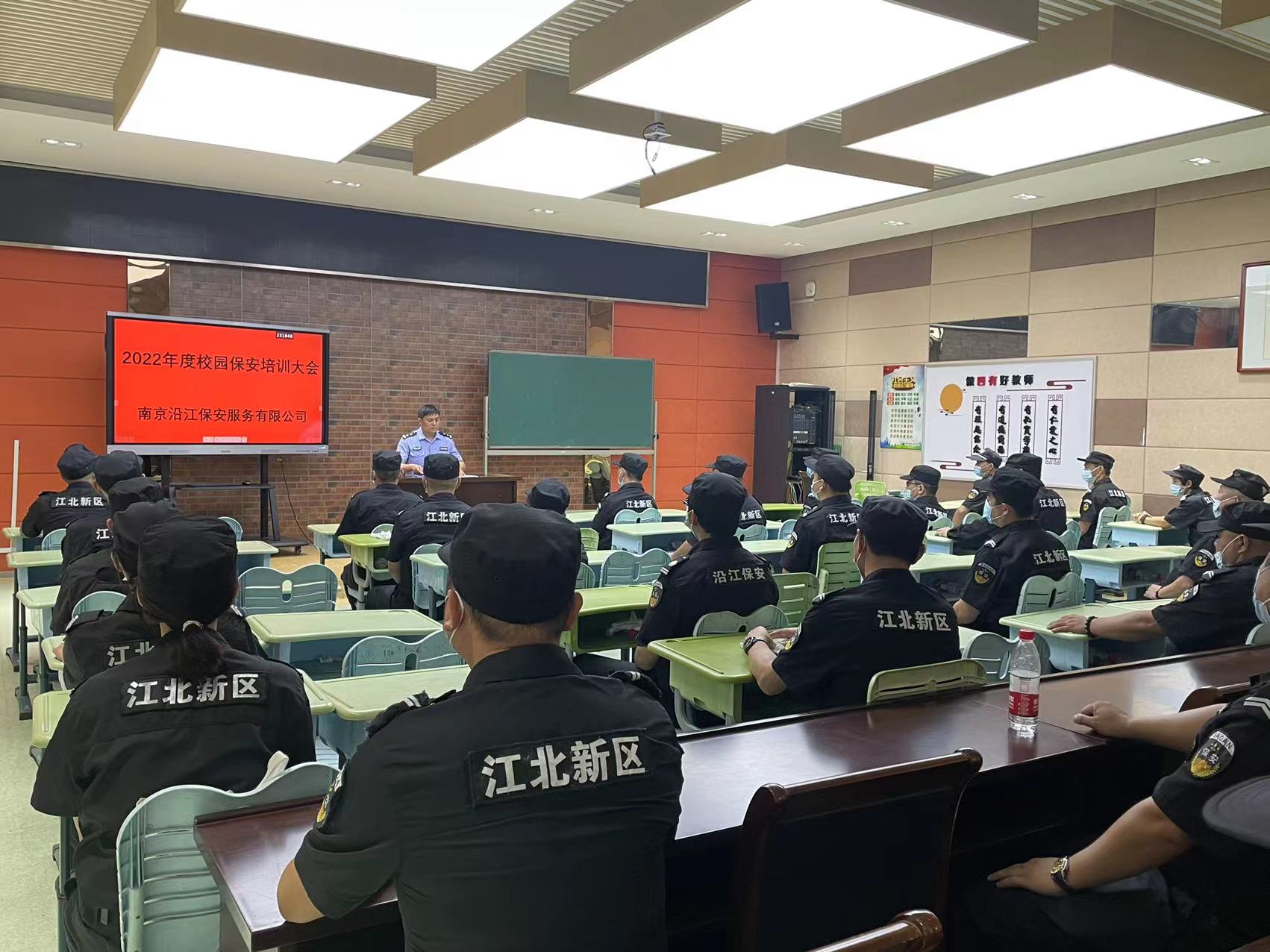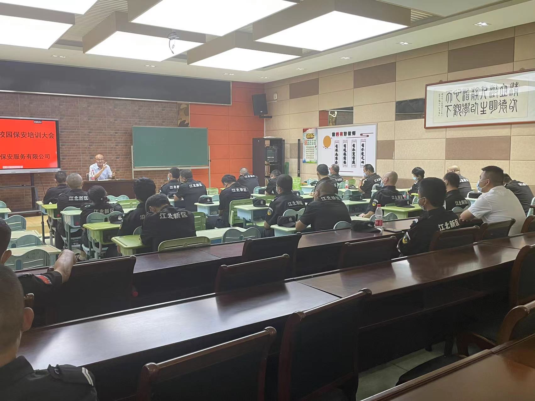 為提高學校保安員的綜合素質(zhì)和履行職責的實際能力,進一步推進學校保安隊伍建設(shè),提升保安隊伍整體素質(zhì)和服務(wù)水平,促進和諧校園、平安校園建設(shè),南京沿江保安服務(wù)有限公司于2022年8月25日舉辦校園保安業(yè)務(wù)培訓(xùn)大會。